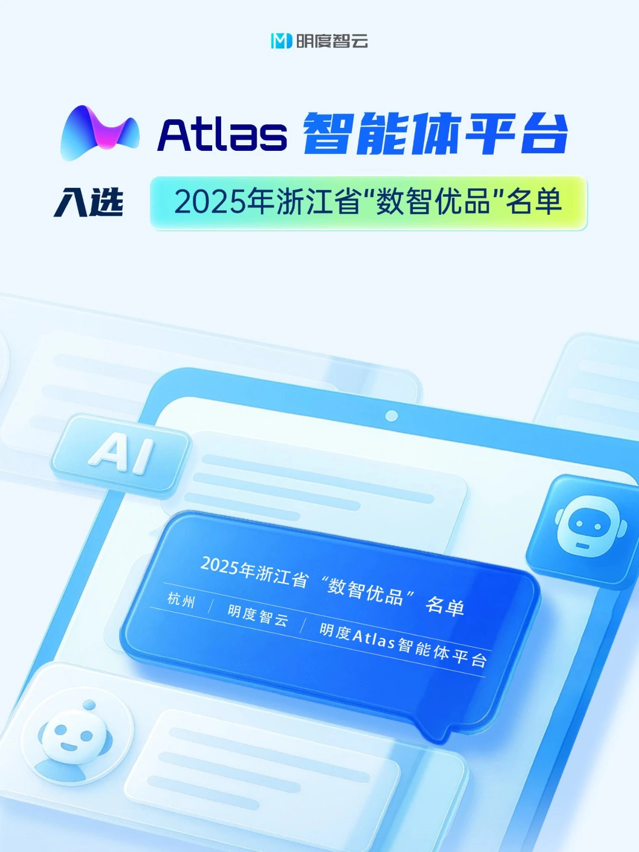 近日,浙江省经济和信息化厅正式公布2025年浙江省人工智能应用场景、“数智优品”等名单,明度Atlas智能体平台脱颖而出,入选“人工智能应用场景”和“数智优品”。